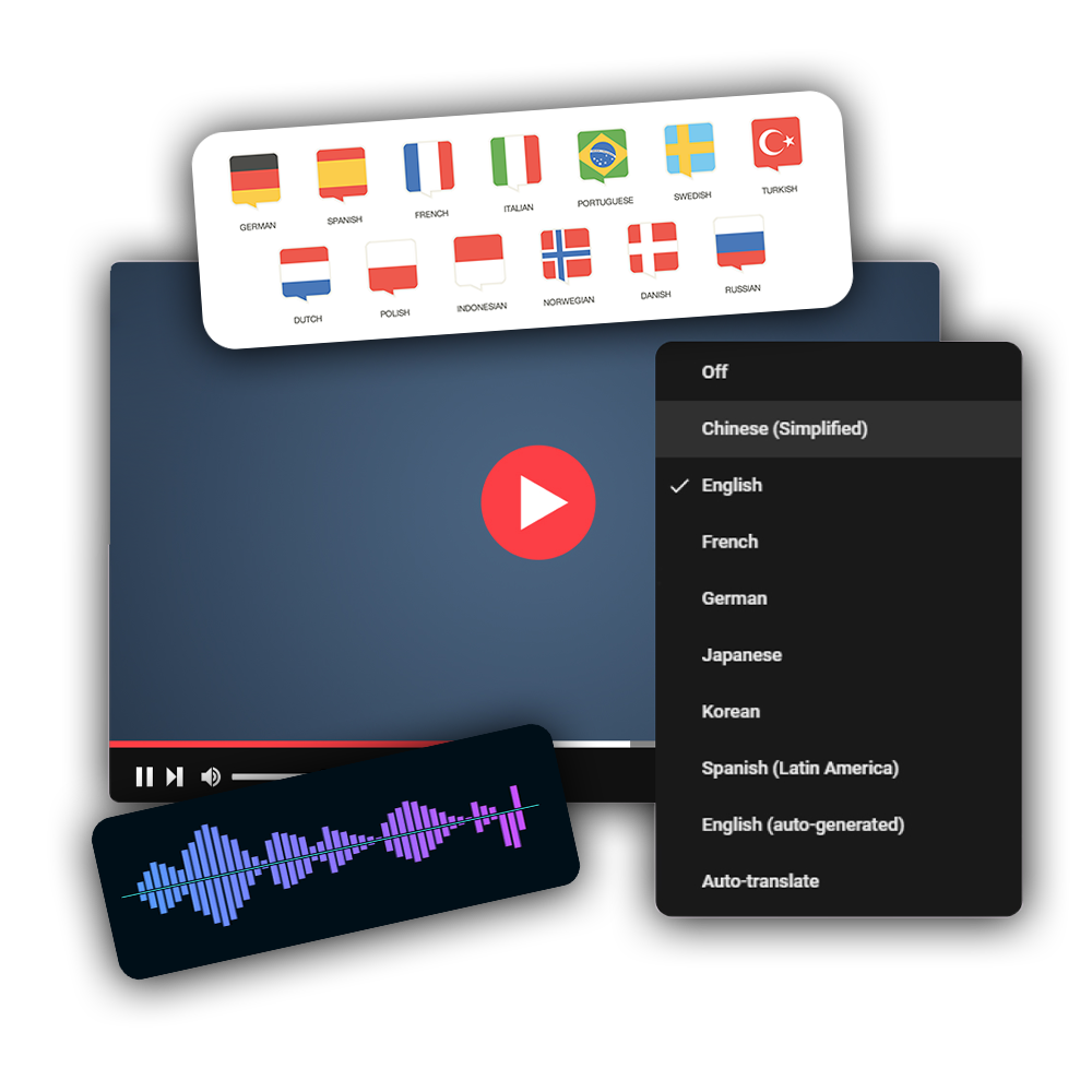 Translate and adapt your YouTube content into multiple languages, such as Spanish, German, Arabic, and Hindi. We create and manage new channels to reach a broader, global audience.